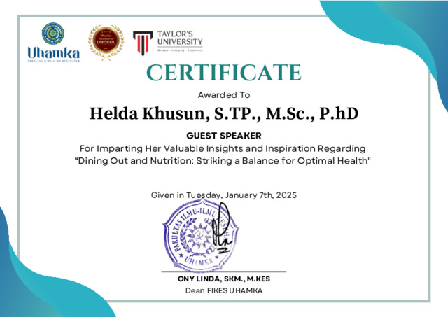 Khusun, Helda Undangan dan ST Guest Lecture Gizi Kuliner. FIKES UHAMKA. (Unpublished)