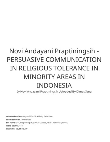 Novi Andayani Praptiningsih, NAP Prosiding Internasional_Scopus_AIP_Persuasive communication in religious tolerance in minority areas in Indonesia. AIP Conference Proseedings.