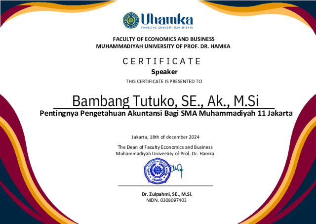 bambang tutuko, bambang SK dan Sertfikat Pembicara_Bambang Tutuko. FEB UHAMKA. (Unpublished)