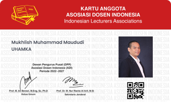 Mukhlish Muhammad Maududi, Mukhlish Kartu Anggota Asosiasi Dosen Indonesia (ADI). Asosiasi Dosen Indonesia.