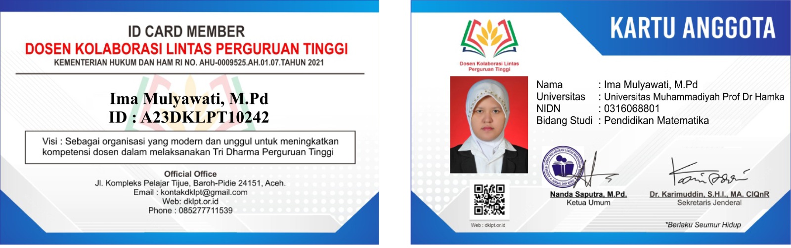 Ima Mulyawati, IM Foto Kartu Anggota Asosiasi DKLPT. Universitas Muhammadiyah Prof Dr Hamka. (Submitted)