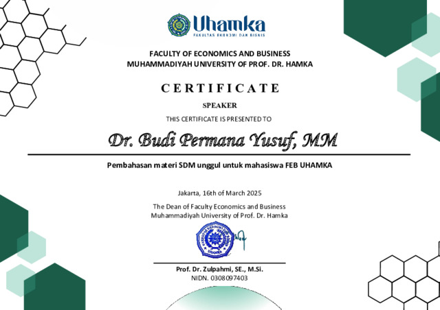 Budi Permana Yusuf, Budi Pembahasan materi SDM unggul untuk mahasiswa FEB UHAMKA. UHAMKA. (Submitted)