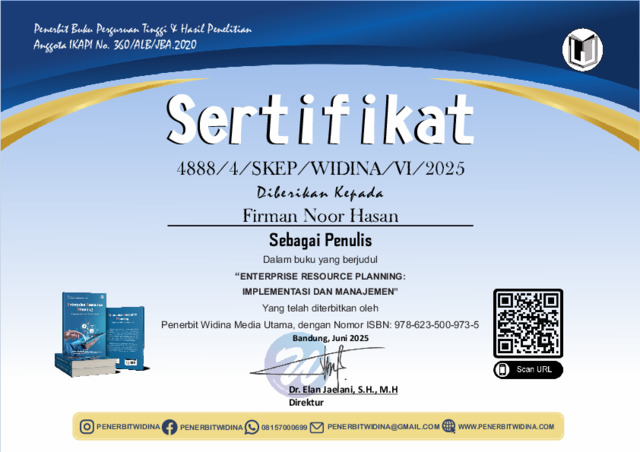 Hasan, Firman Noor (2025) (Buku) - Enterprise Resource Planning: Implementasi dan Manajemen [2025-06-03]. In: Enterprise Resource Planning: Implementasi dan Manajemen. Penerbit Widina Media Utama, Bandung, pp. 1-189. ISBN 6235009739, 9786235009735