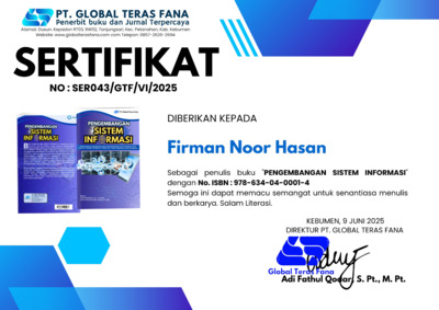 [2025-06-09] - sertifikat - Penulis Buku 'Pengembangan Sistem Informasi' (Global Teras Fana).pdf Download (625kB) | Preview |