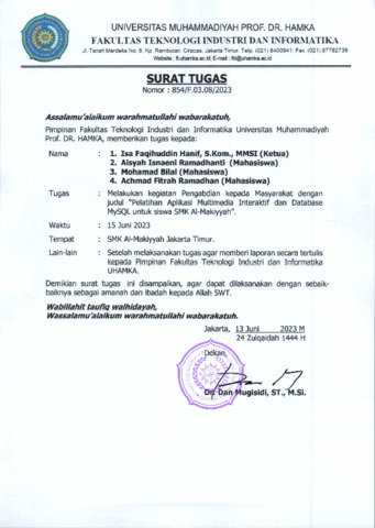 Isa Faqihuddin Hanif, Isa Surat Tugas Pengabdian. [Teaching Resource]