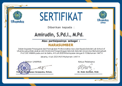 Amirudin, Amirudin Sertifikat Narasumber. UHAMKA. (Submitted)