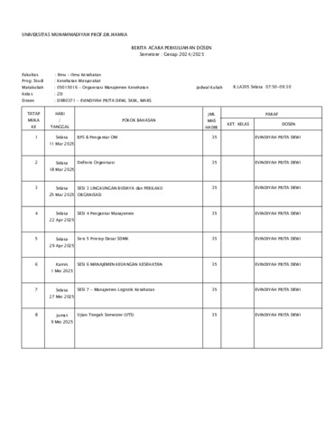 evindiyah, prita dewi Organisasi Manajemen Kesehatan. UHAMKA.