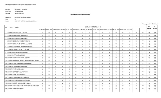Pamungkas, Andhika Berita acara, Presensi kehadiran, Nilai Komunikasi Massa 4D. Universitas Muhammadiyah Prof, Dr. Hamka. (Unpublished)