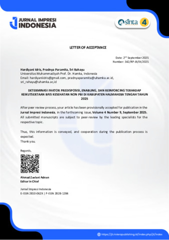 Jurnal - Determinasi Faktor Predisposisi, Enabling dan Reinforcing (Template) - Sept 2025.docx Download (47kB) |