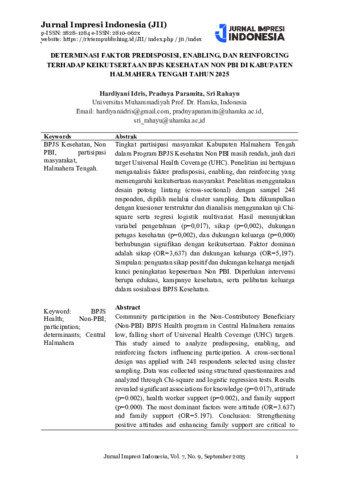 Jurnal - Determinasi Faktor Predisposisi, Enabling dan Reinforcing (LoA) - Sept 2025.pdf Download (864kB) | Preview |
