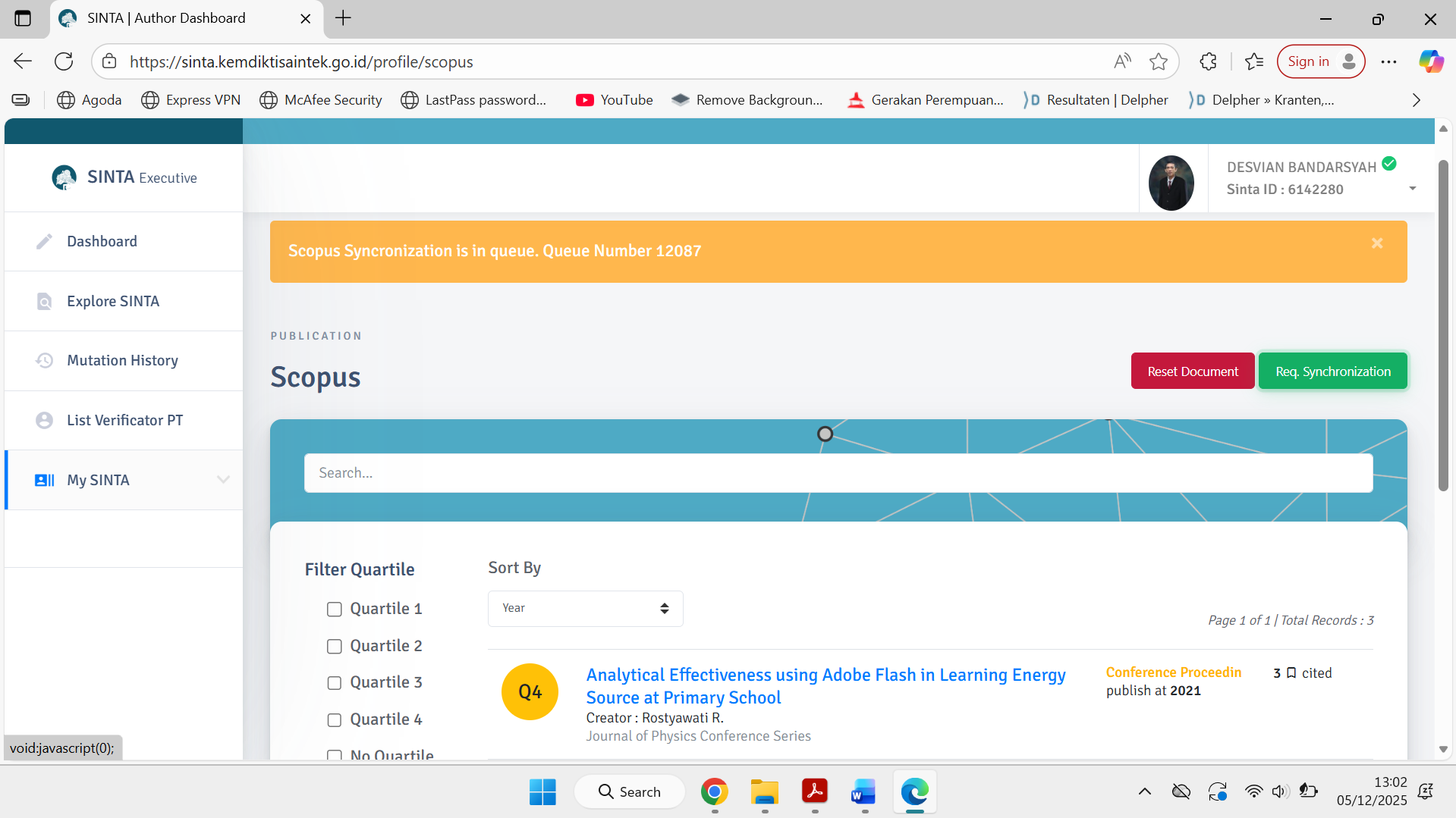 Bandarsyah, Desvian Bukti Sinkronisasi Karya Ilmiah dalam SINTA. Universitas Muhammadiyah Prof. Dr. Hamka. (Unpublished)