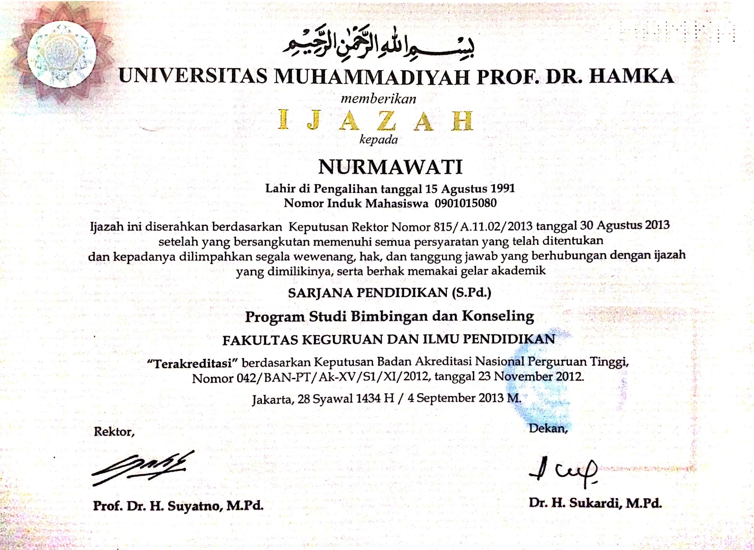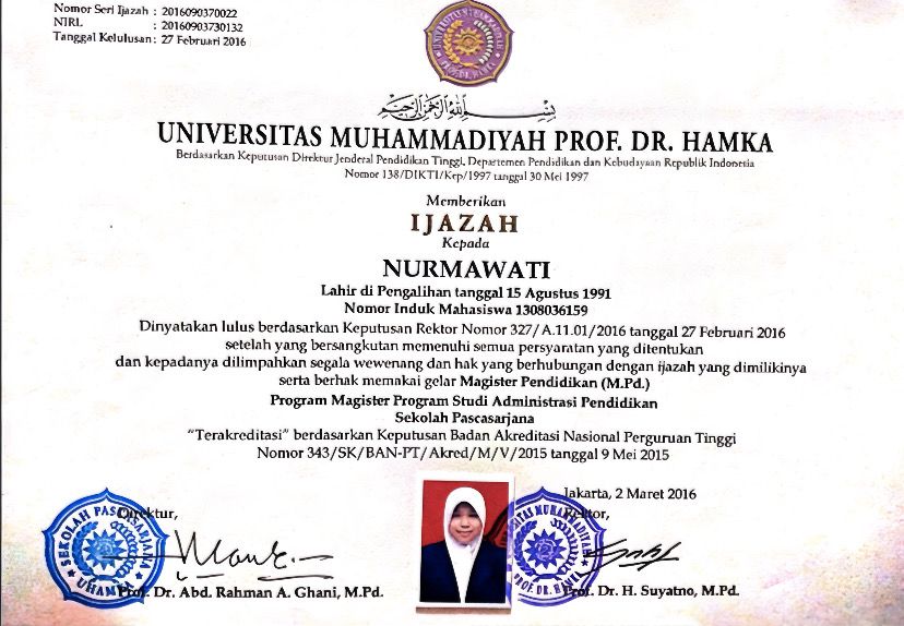 Nurmawati, Nurmawati Ijazah dan Transkrip Nurmawati. [Image] (Unpublished)