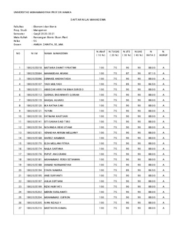 Zainita Saini, Amilia BAP, DAFTAR HADIR, DAFTAR NILAI RANCANGAN BISNIS 5G. Universitas Muhammadiyah Prof. DR Hamka. (Unpublished)