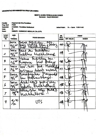 Kusmajid, Kusmajid BAP, Presensi dan Nilai Pendidikan Multikultural 5L. Universitas Muhammadiyah Prof. DR. HAMKA. (Unpublished)