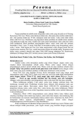 Raiza Zenithya, Raiza dan Prima Gusti Yanti, PGY dan Irwan Baadilla, Irwan (2019) ANALISIS WAKTU CERITA NOVEL TENTANG KAMU KARYA TERE LIYE. In: Pesona : Pekan Seminar Nasional Pendidikan Bahasa dan Sastra Indonesia.